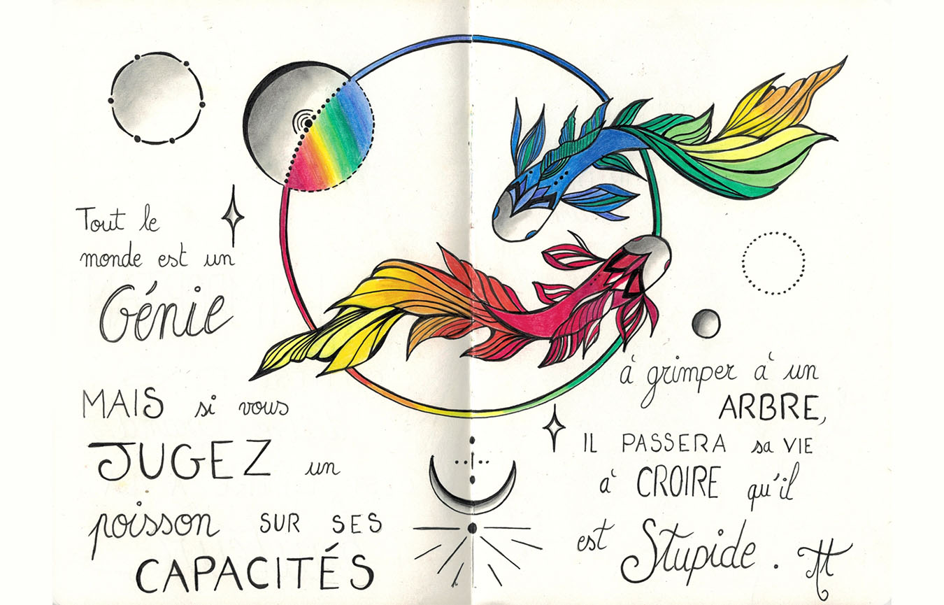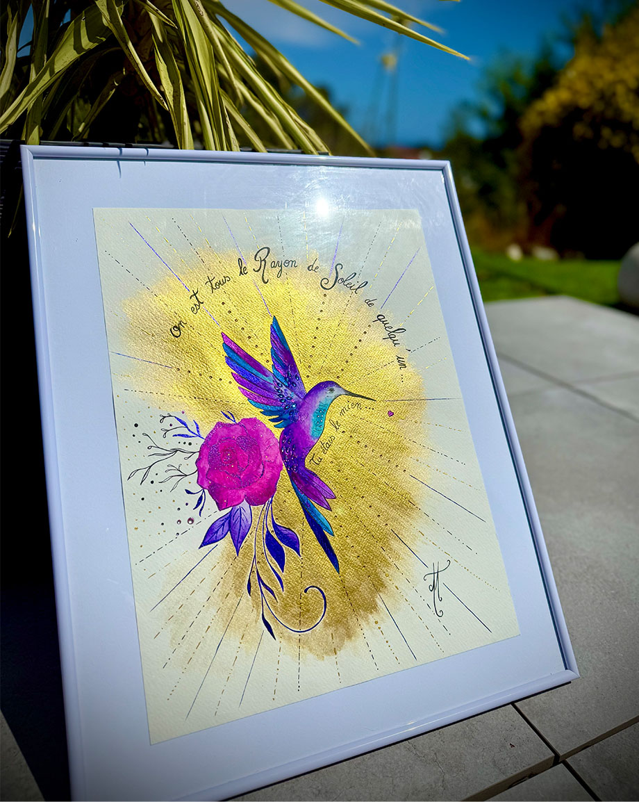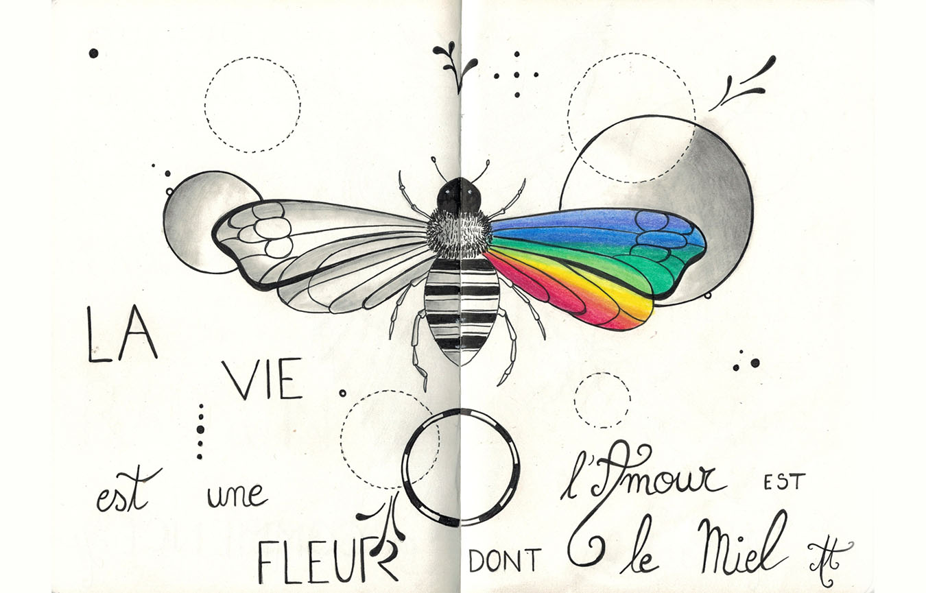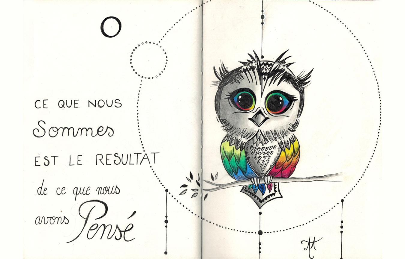 Je baigne dans le milieu artistique depuis ma tendre enfance car mes parents sont tous 2 Artistes Peintres. J'ai toujours adoré les couleurs, l'odeur du papier, les petits carnets et le dessin.