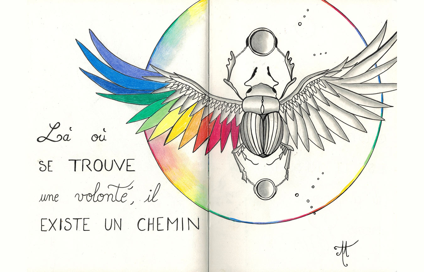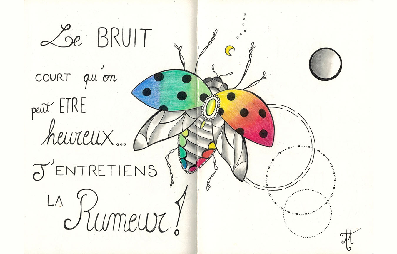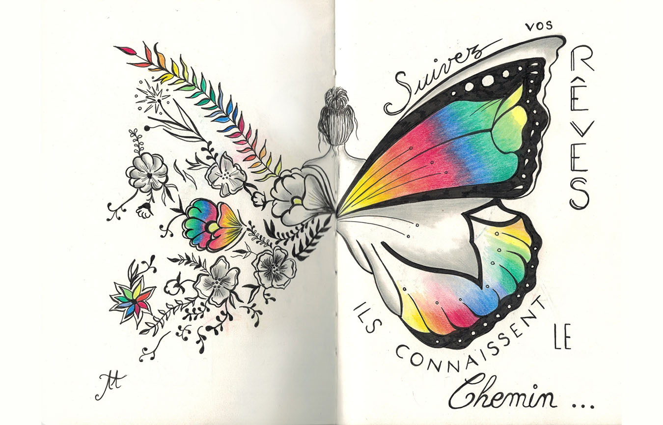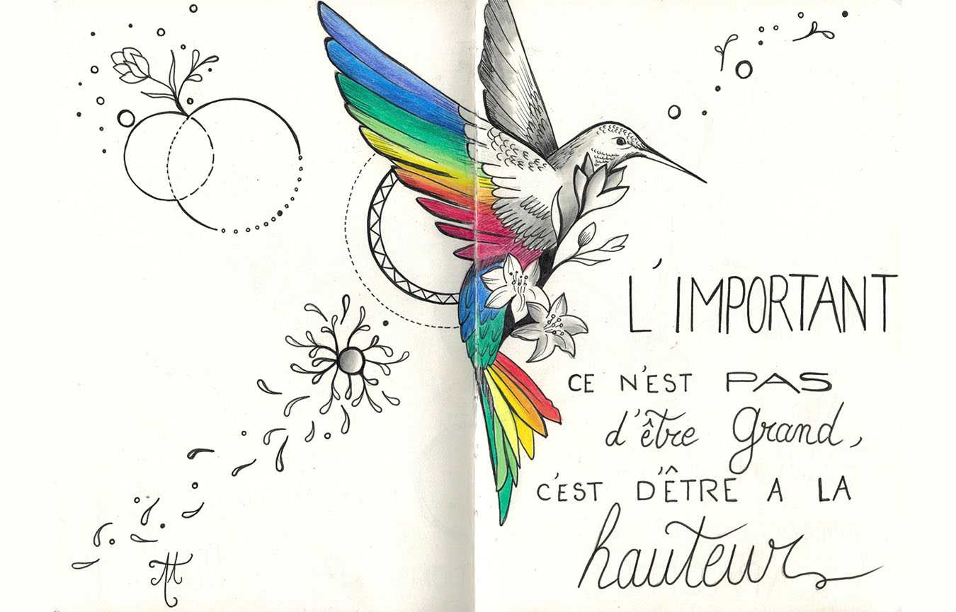 Je baigne dans le milieu artistique depuis ma tendre enfance car mes parents sont tous 2 Artistes Peintres. J'ai toujours adoré les couleurs, l'odeur du papier, les petits carnets et le dessin.
